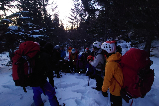 アイゼン講習希望者は、登山本店 金井店長の講習を受けます。