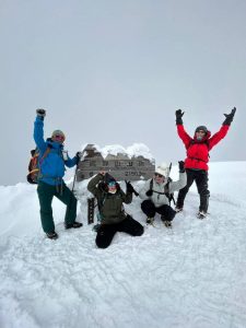 持ってきたワカンやスノーシューを使うことなく(というか天気悪い中履き替えるのが面倒だったので・・・)アイゼンでラッセルに耐えて山頂につきました。