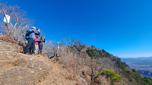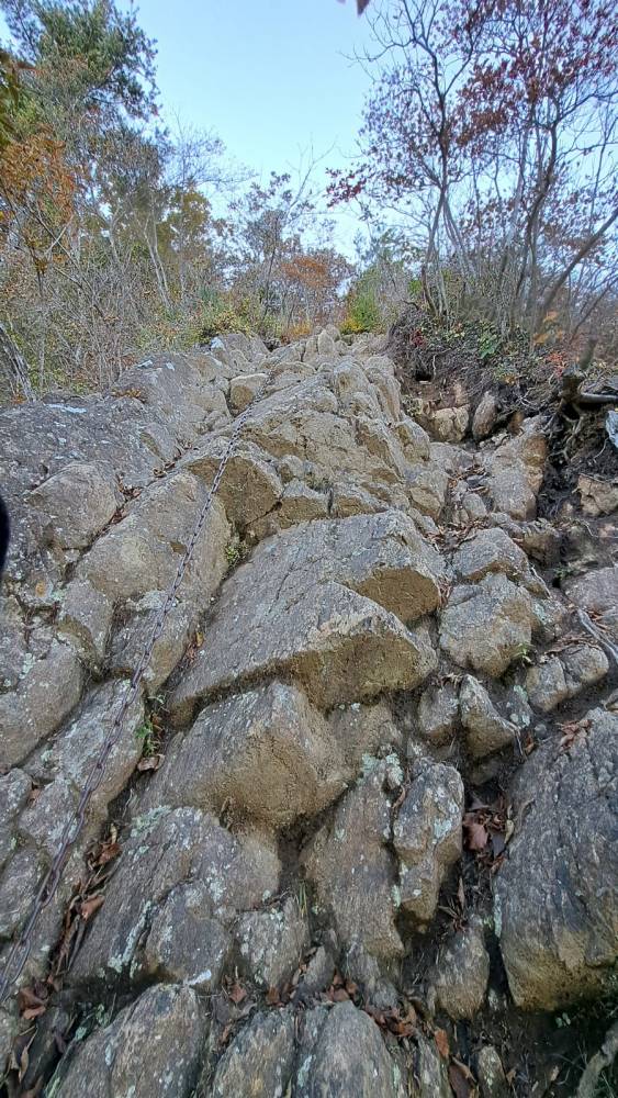 ヘルメットを着用して緊張感を持って岩場に臨み、鎖場を丁寧に登りながら、