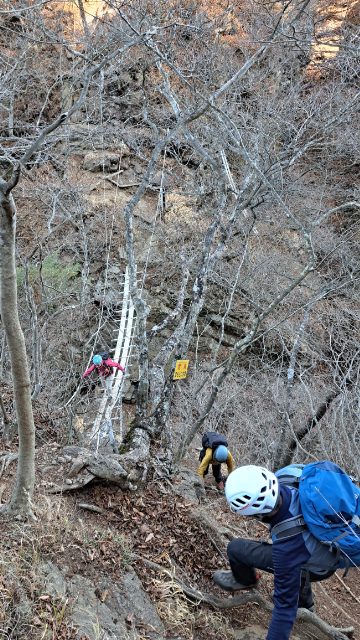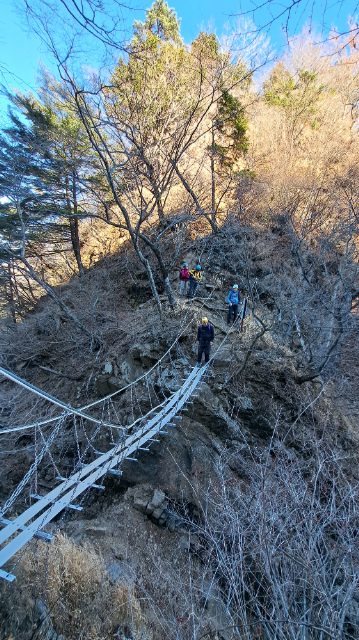 で、十一ヶ岳の先に核心の吊橋と岩場の登りが待ってます。