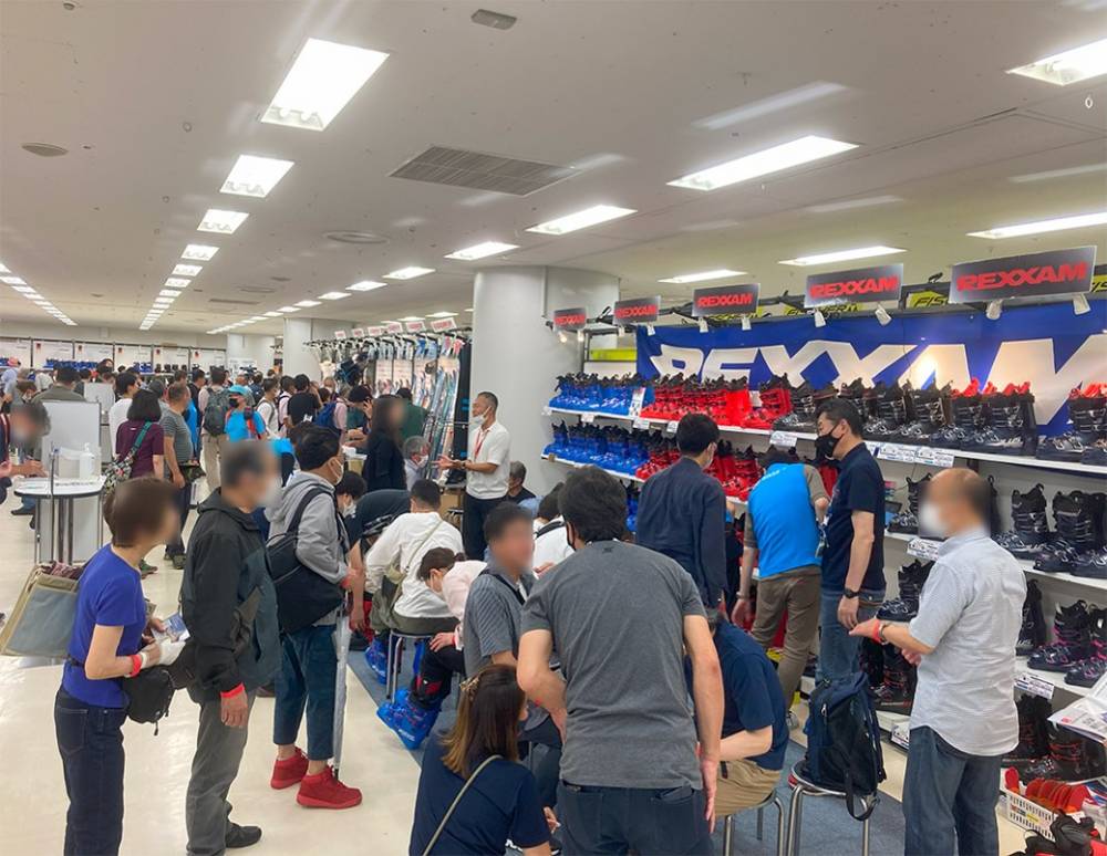 色々な分野の板、ブーツ、ヘルメットやゴーグル、グローブ、ウェアなどなどが勢揃いするお祭りです。