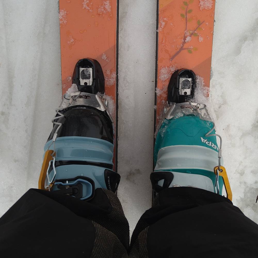 まだ林道の雪は繋がっており、シール歩行で大雪渓末端までアプローチ。ただ、長走沢の出合は完全に雪がなくなっており、まさかの渡渉…