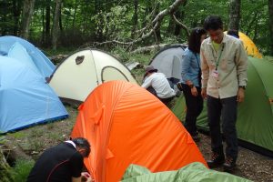 午後はテント設営などの講習。