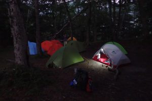各自で夕食を作って食べて、ドキドキしながらシュラフで寝ます。
