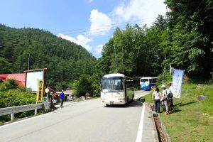 写真のバスは平日運行してないので、入下山ともにタクシーを使います。