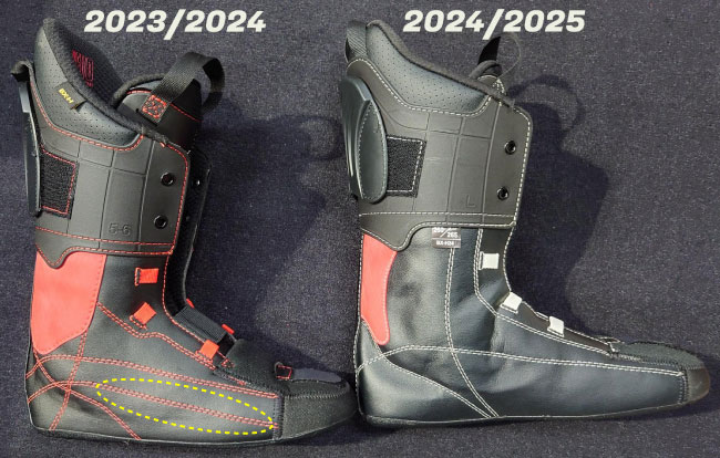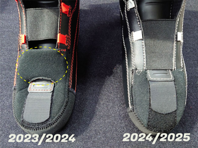 ・甲の部分は薄い構造に変更。前方向に収まりが良くなる事や甲の圧迫も軽減。自然なフィット感を感じられます。