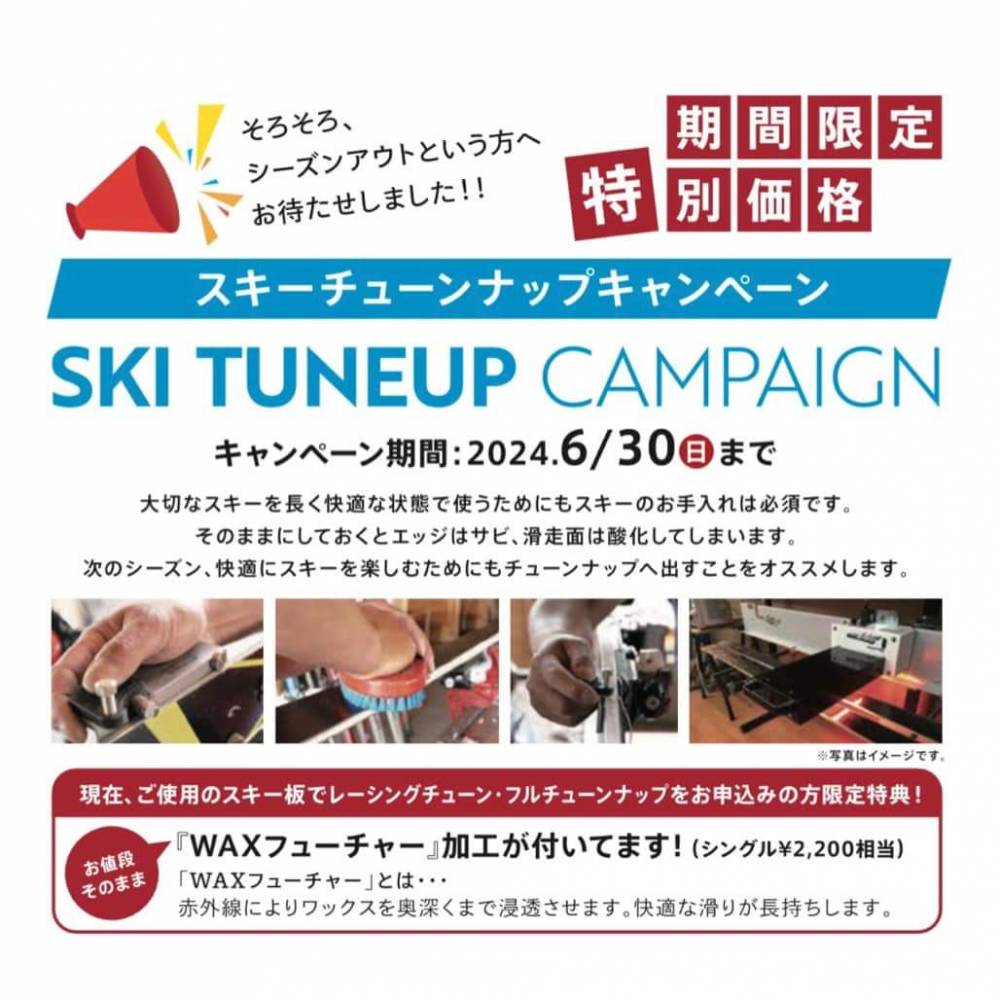 そのほか現在開催中のスキーチューンナップキャンペーンは6月30日まで!!