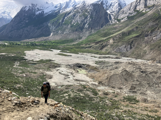 アランドゥ村と汚い感じの氷河。村を超えて少し登った序盤の風景