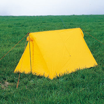 ツエルトは強風時の休憩や体温保持のためにかぶって使うのが便利に作られていますが、もとはウインパー型テントを原型としているので、支柱があれば立派にテントとして使用できます。樹林帯であれば立ち木を利用してもOKです。いずれにしても張り綱を付けて、四隅のループには50センチほどの細引きを付けておけば慣れた人ならば5分もあれば立派なテントとして設営可能です。(詳しい方法はぜひ登山学校に参加して身につけてください)