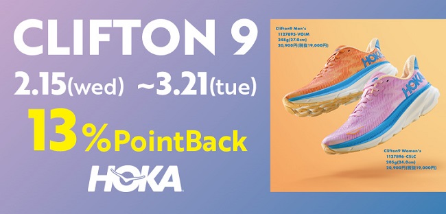 【HOKA】CLIFTON9 期間限定13%ポイント還元!
