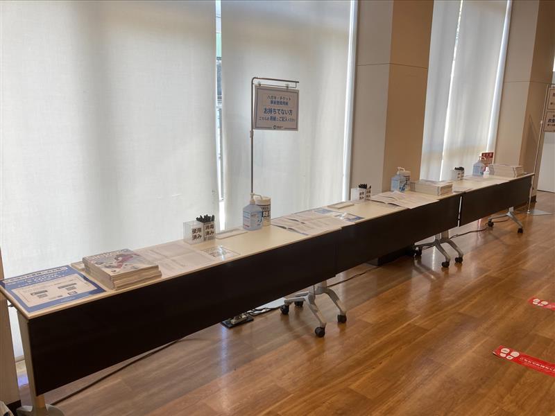 入場の際は受付が必要です。その場で記入できるスペースがあります。