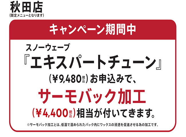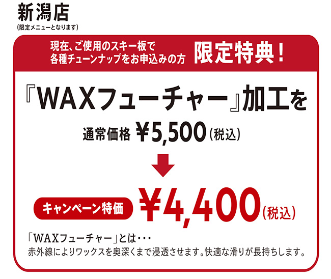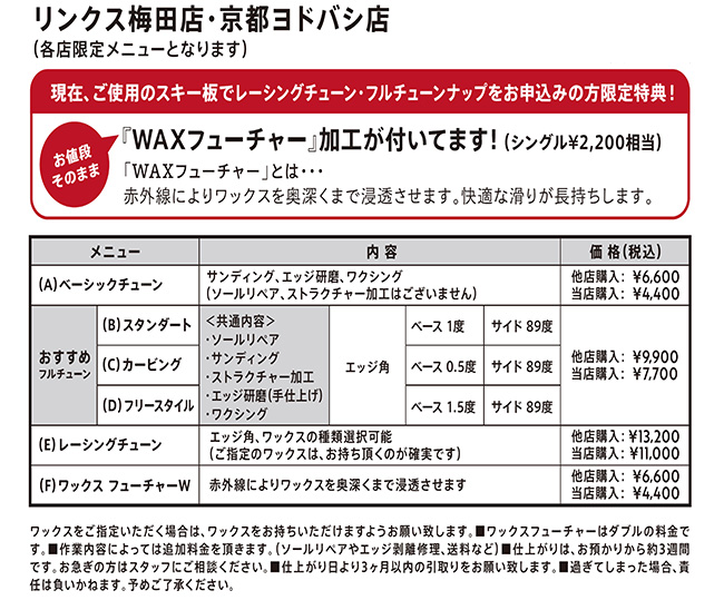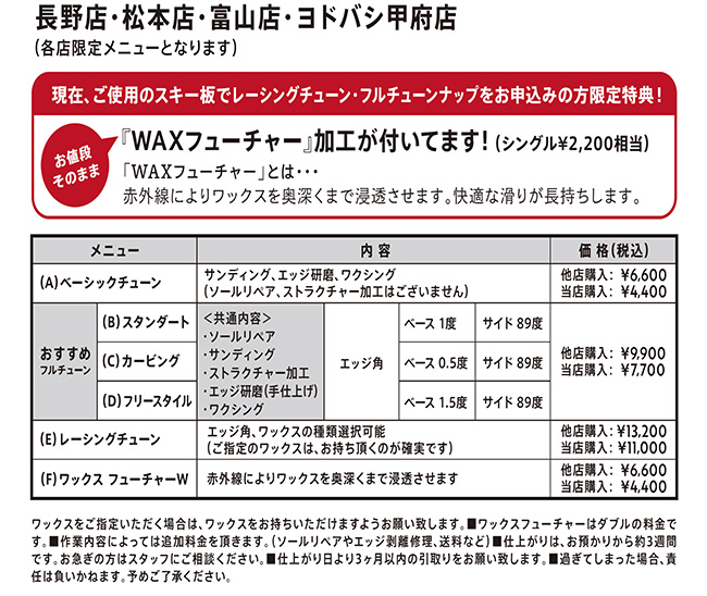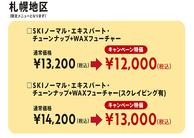 対象店舗でのスキー チューンナップがお得なキャンペーン価格で受けられます。