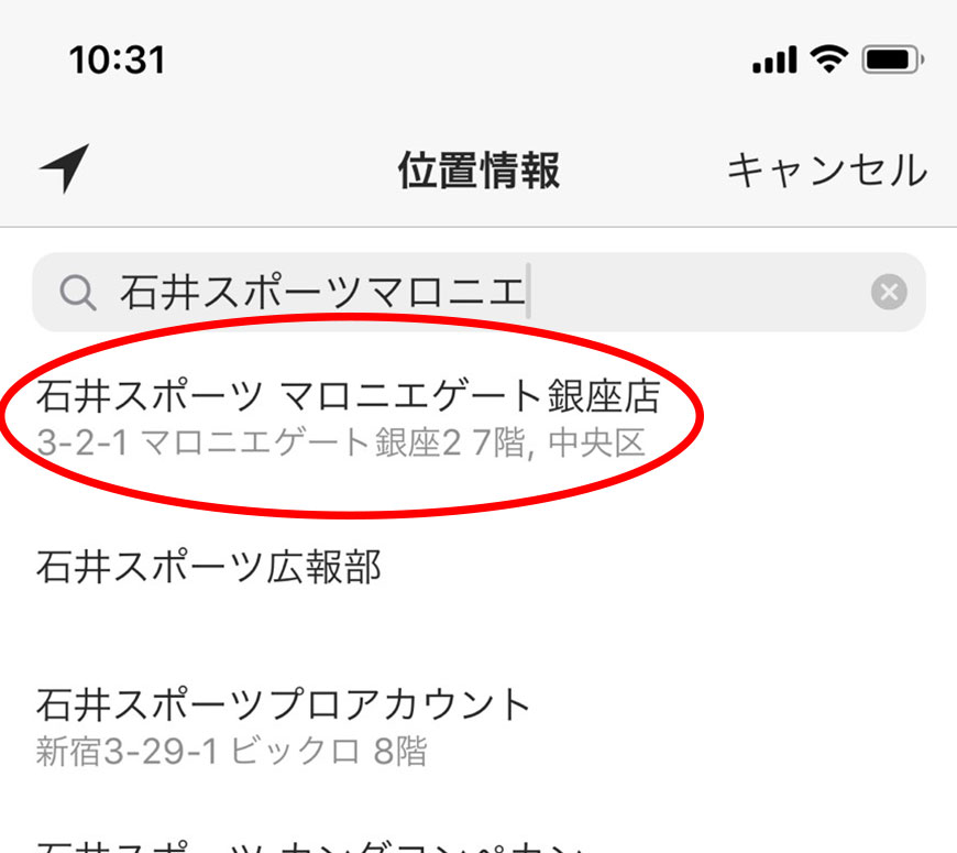 ④「石井スポーツ マロニエゲート銀座店」をタップ