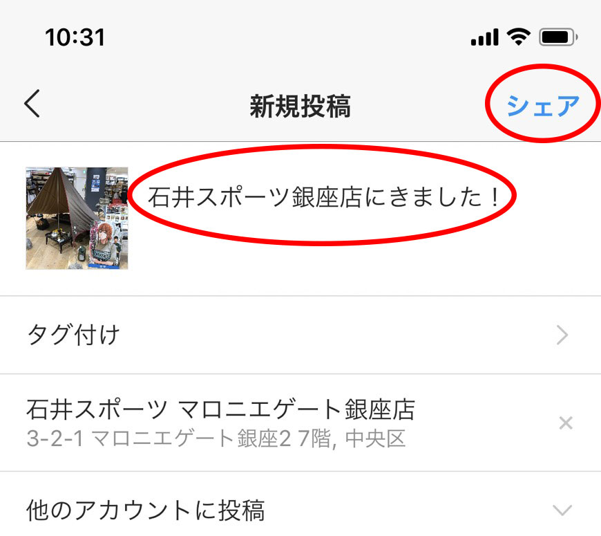 Instagramにて「石井スポーツ マロニエゲート銀座店」を場所に追加して投稿すれば応募完了!